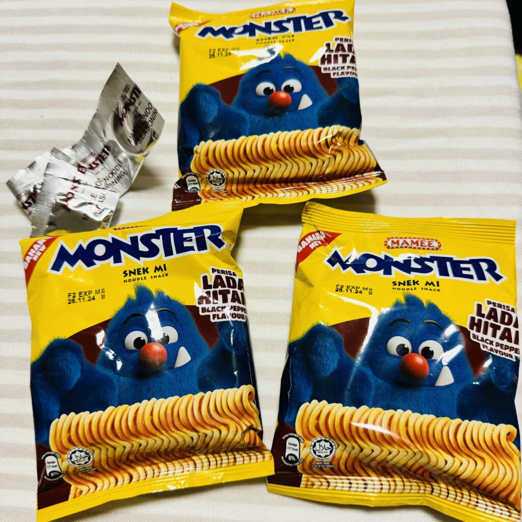 次に紹介するのは、マレーシア定番のお菓子「Mamee Monster」です。