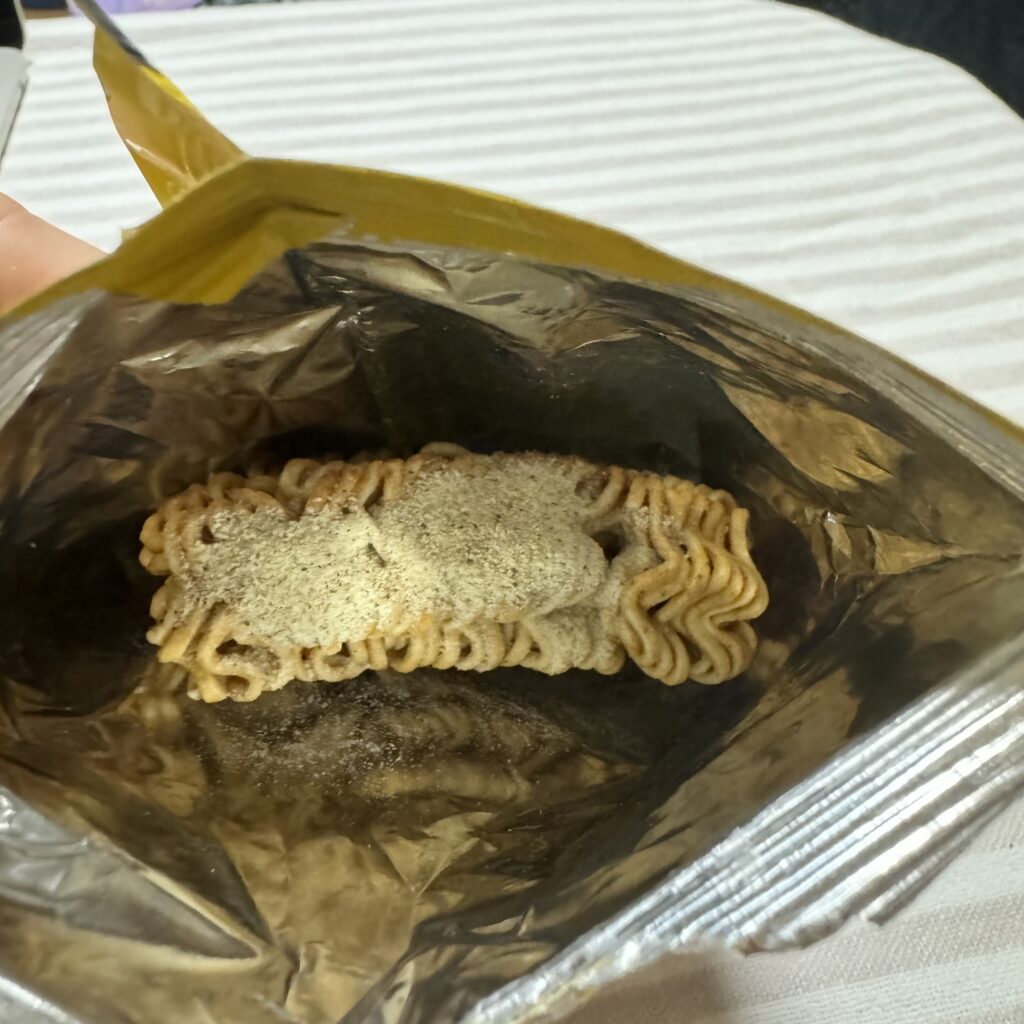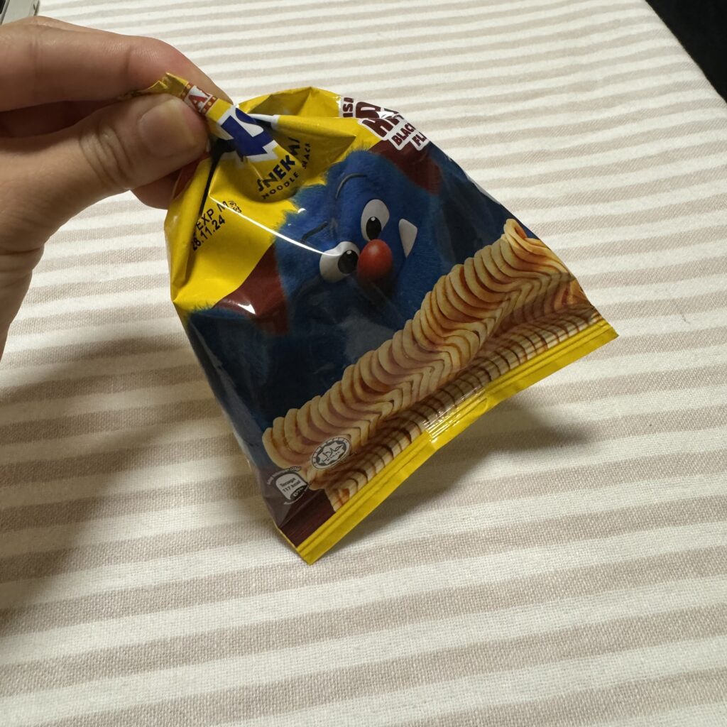 小袋のラーメンスナックで、フレーバーの粉が一緒に入っています。味はたくさんあって、バーベキューやチキンなどがあります。