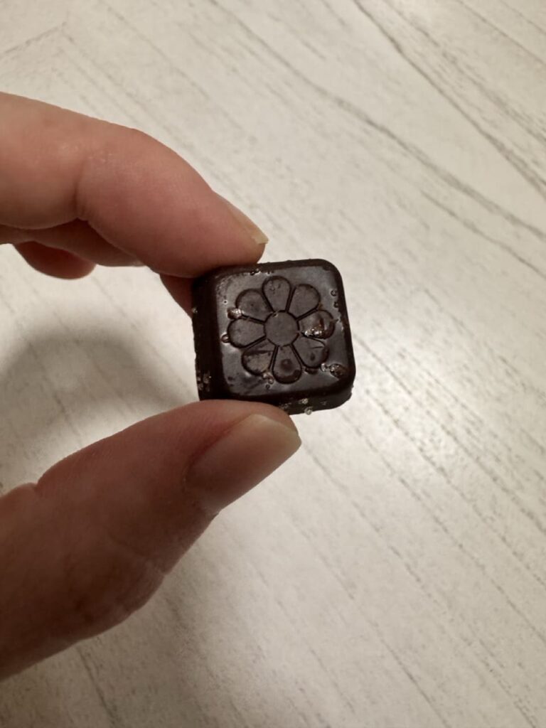 味はダークチョコレートで、甘すぎないので食べやすくて美味しいです♡