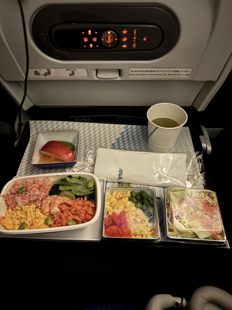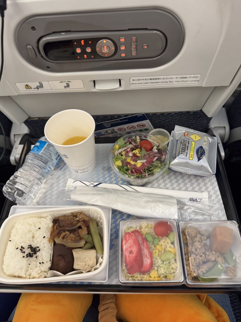 和食やあられなど、馴染みのある食べ物が機内で食べられて、とても満足でした☺️